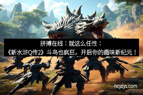 在这个快节奏、压力山大的时代,《新水浒Q传2》用它那“就这么任性”的游戏风格,彻底颠覆了传统RPG的固有框架。作为一款集养成战斗、策略布局、趣味互动为一体的奇幻手游,它以丰富的剧情、精美的画面和创新玩法赢得了众多玩家的喜爱。而更令人惊喜的是,全新加入的“斗鸟系统”,让你在水浒世界中体验一场前所未有的鸟类争霸盛宴。