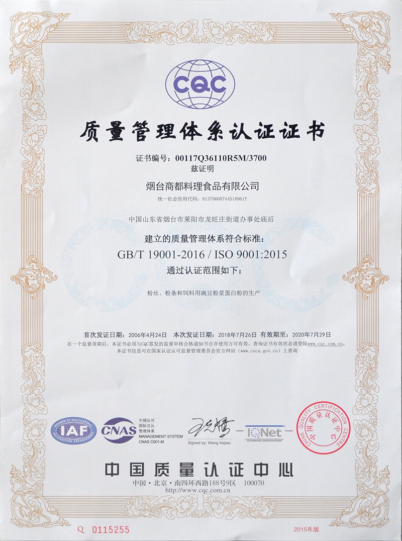近日,CQC中国质量认证中心山东评审中心评审组在Z6尊龙凯时食品工业园对烟台商都料理食品有限公司进行了最新标准的ISO9001质量管理体系认证 。