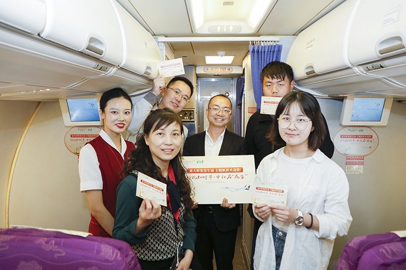 “只用当季新花生,低温蒸炒,不勾兑 ,不调香,头道初榨 ,地道原香 。”美丽的工作人员正热情的向乘客们讲述着“如何分辨好的花生油”……