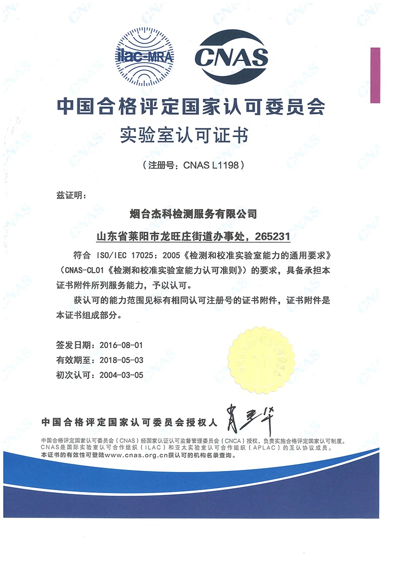 3月31日-4月1日,中国合格评定国家认可委员会(CNAS)委派专家组一行7人 ,对杰科检测进行了实验室认可换证评审及扩项评审的现场评审。